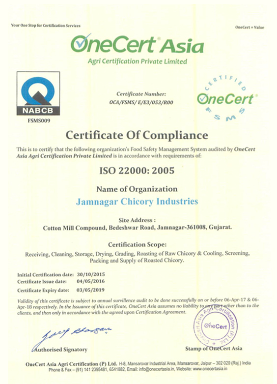 JCI is an ISO 9001-2008 certified company which recognizes the significance of the quality chicory. It all starts with the very first step, by importing a high quality seeds of chicory for plantation.